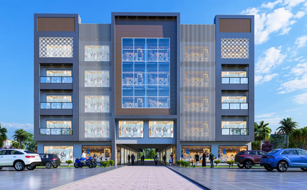 The mall is being developed across multiple floors, thoughtfully planned to accommodate branded retail outlets, shopping marts, showrooms, and daily-need stores. The architectural design focuses on maximum shop visibility, smooth customer flow, and efficient space utilization, making it ideal for long-term commercial success.